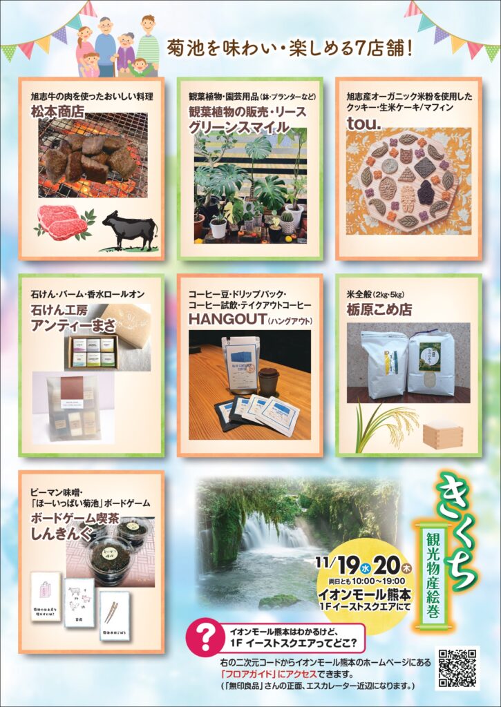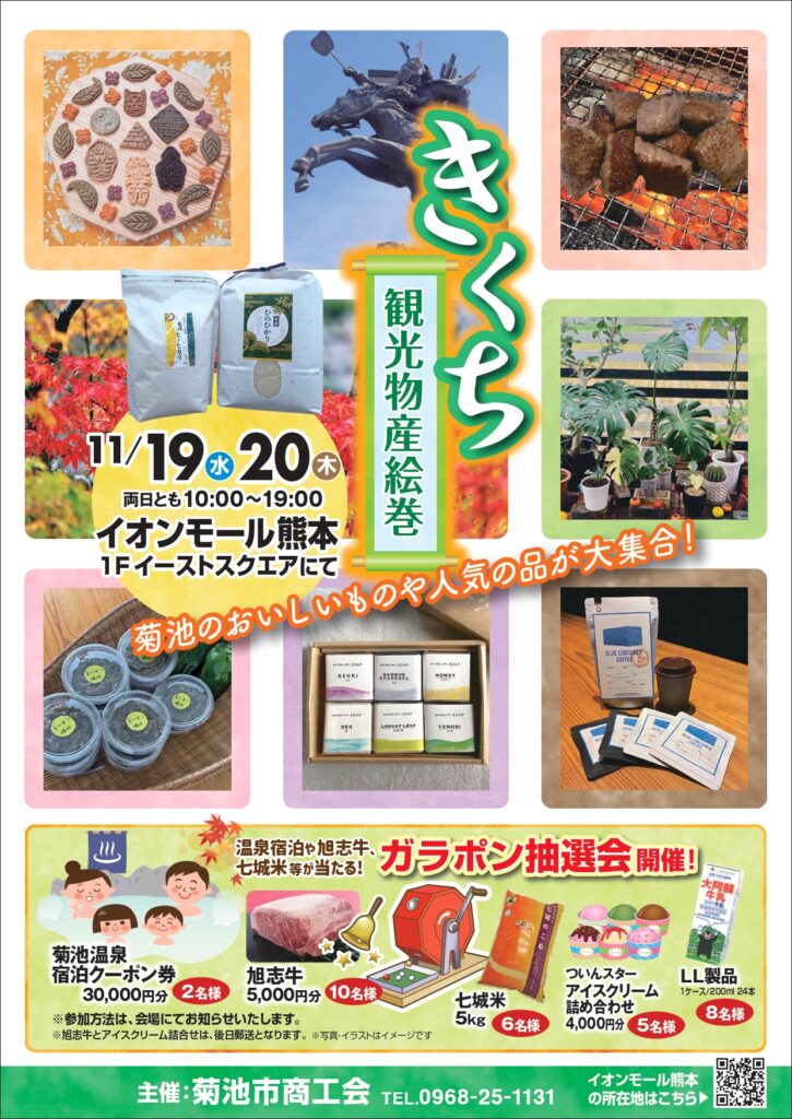 11月19日(水)・20日(木)に、イオンモール熊本1階イーストスクエアにて「きくち観光物産絵巻」を開催いたします。