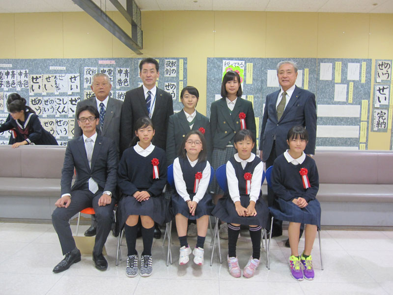 菊池地区納税貯蓄組合連合会は「小・中学生の税に関する作品の表彰式」を、大津町のイオン大津店において2016年11月14日に開催しました。